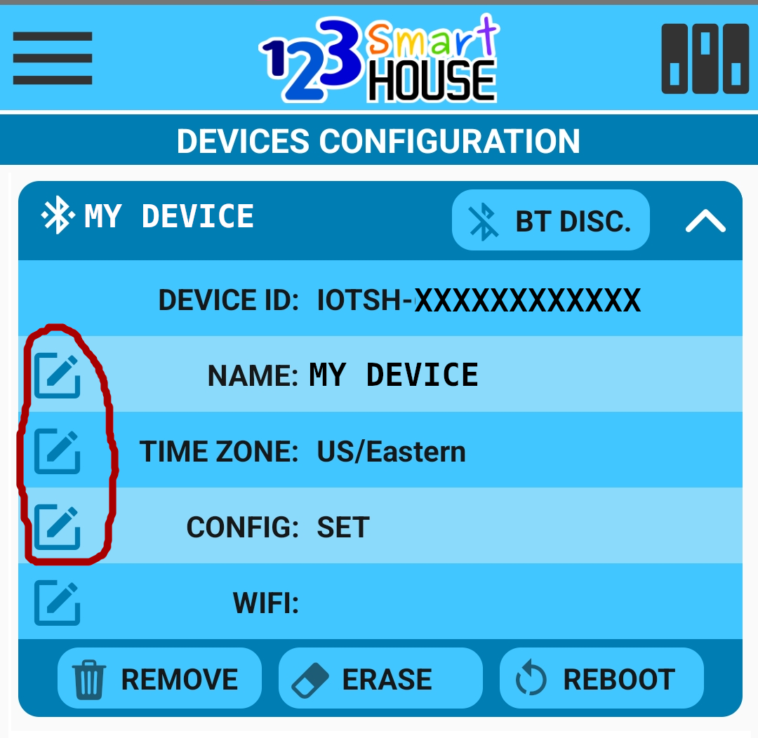 Tap on this button if you want to reboot (power cycle) this device. It will only show when you are connected via Bluetooth or in the same WiFi network as the device.