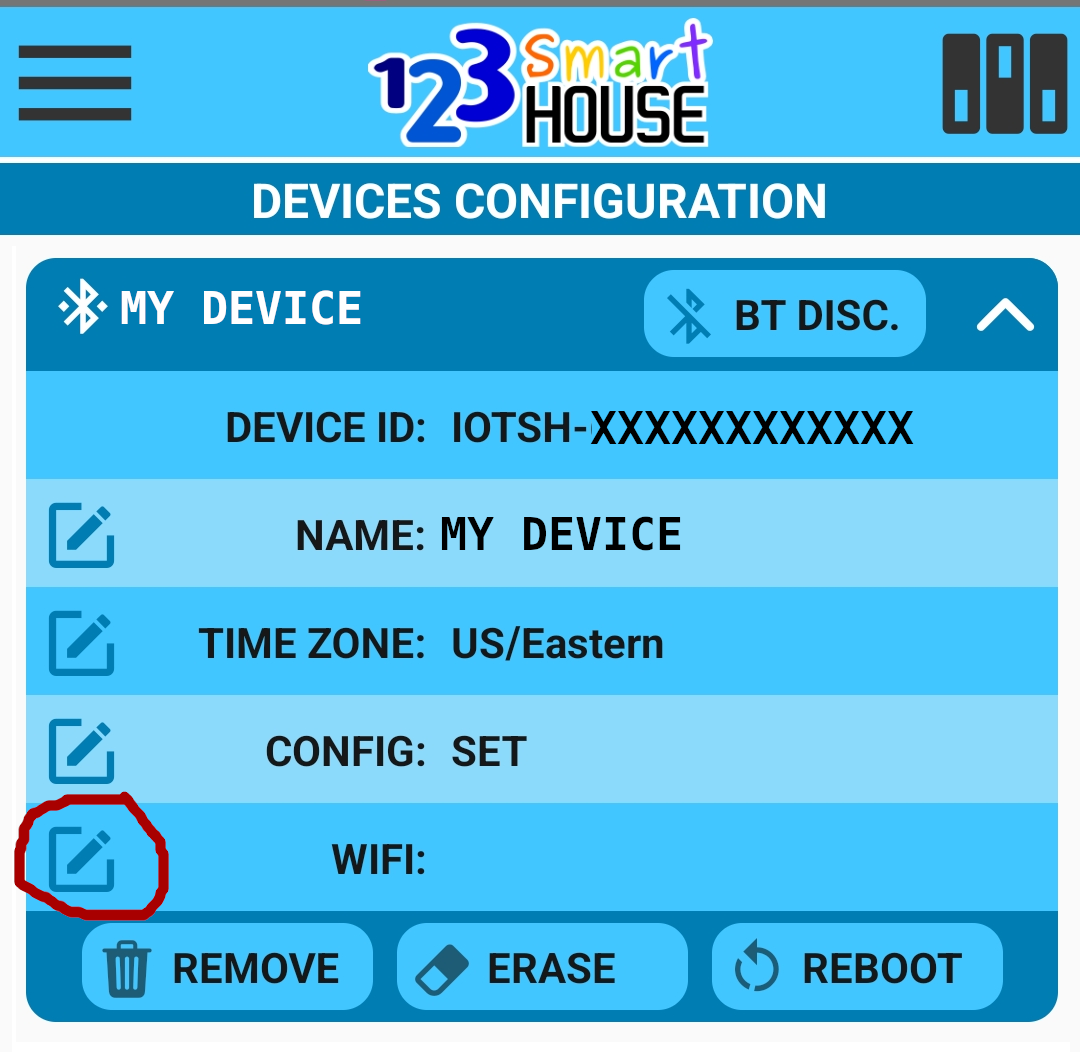 Press on the device you want to configurate to expand and show all the options, then press the edit icon on the WiFi section:
