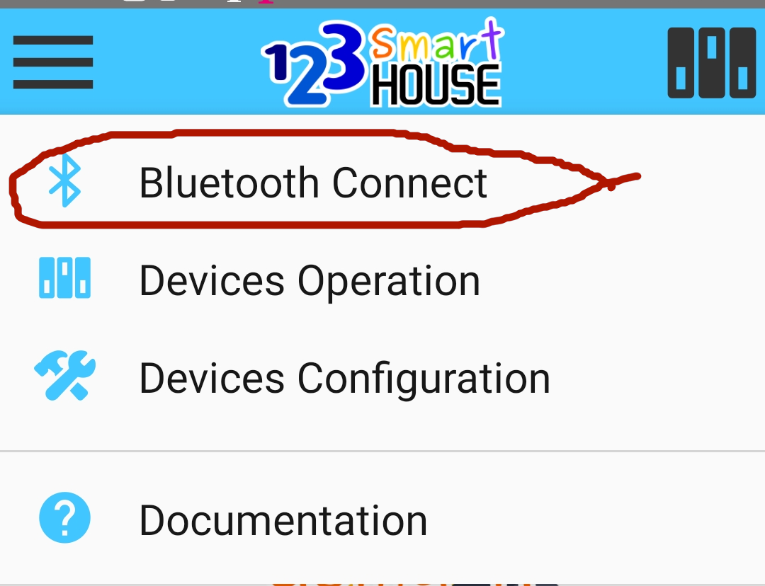 The first step to operate your device is connecting via Bluetooth. To accomplish that, you need to put the device in bluetooth mode wich may vary depending on the type / model of the device. For some devices is done by doing a power cycle, for others, is done by pressing the bluetooth button. Then, on the App, press the main menu button: