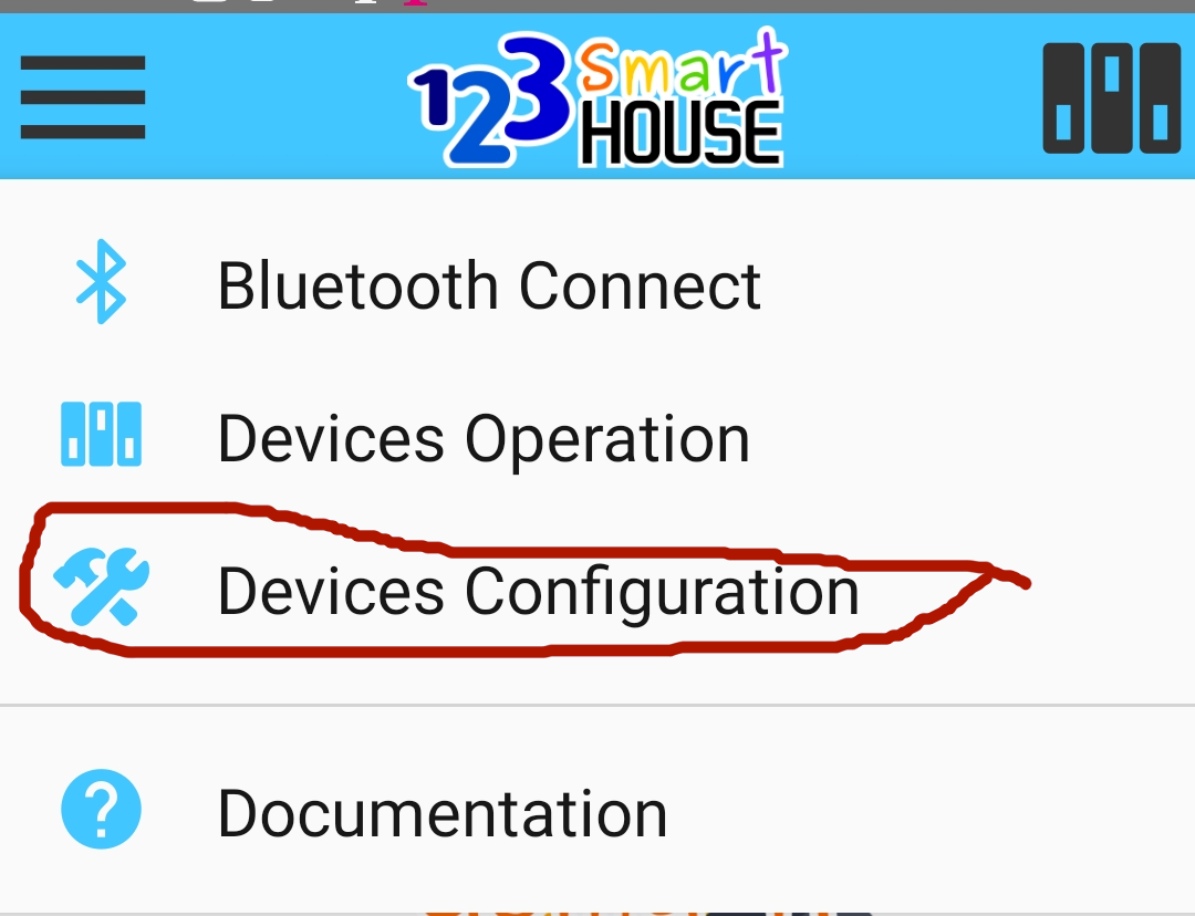 You can also connect the device to a WiFi network. This will allow you to control your device without connecting via bluetooth and also from any location in the world. To achieve that, press the Main Menu button and select "Devices Configuration":