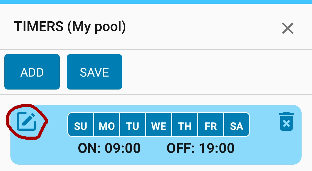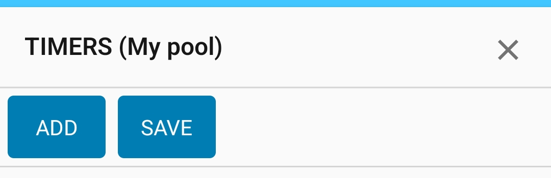 Timers are used to program automatic changes of state on your devices items. For example to turn ON my pool light every day or specific days at 9:00 PM etc. Tap on any timers button to have access to timers configuration: